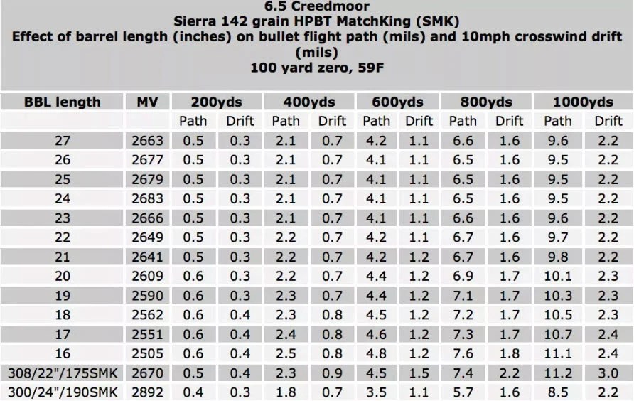 6.5 Creedmoor Ballistics Chart 1000 yards